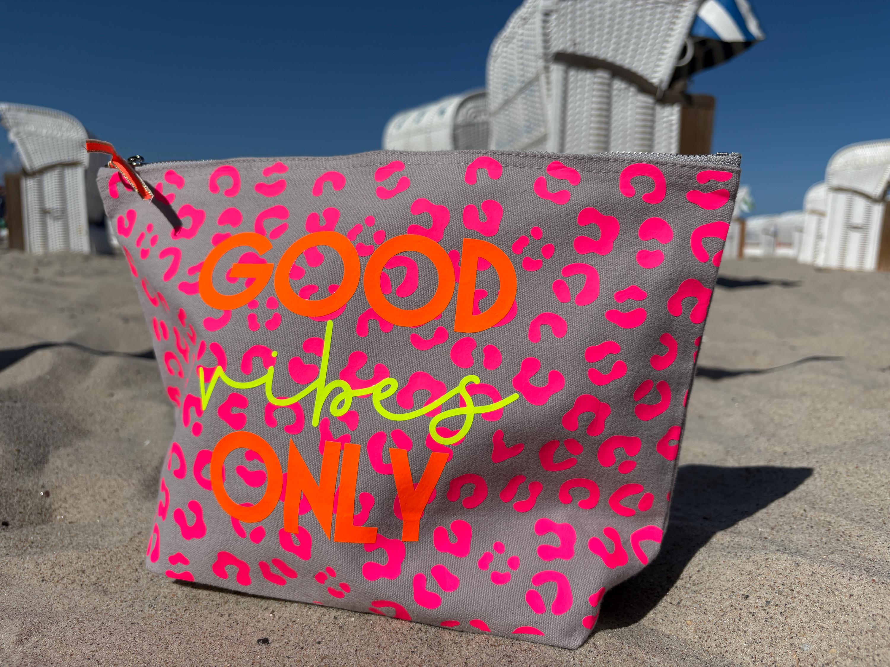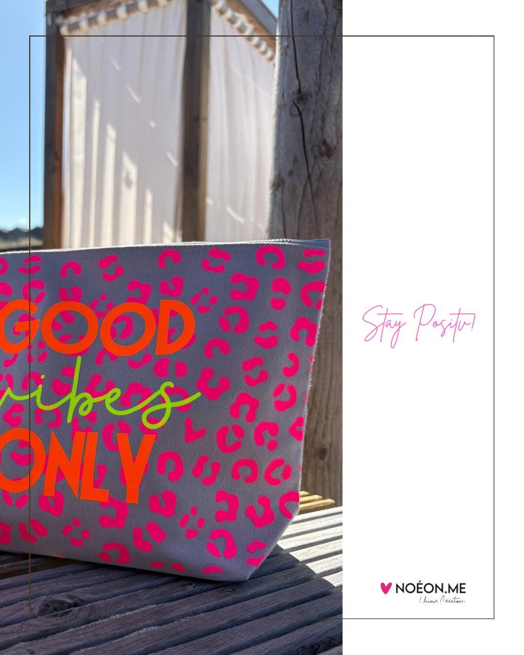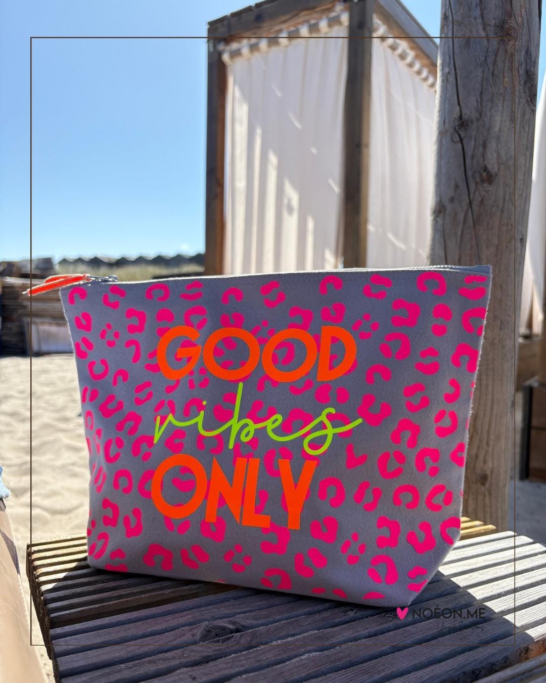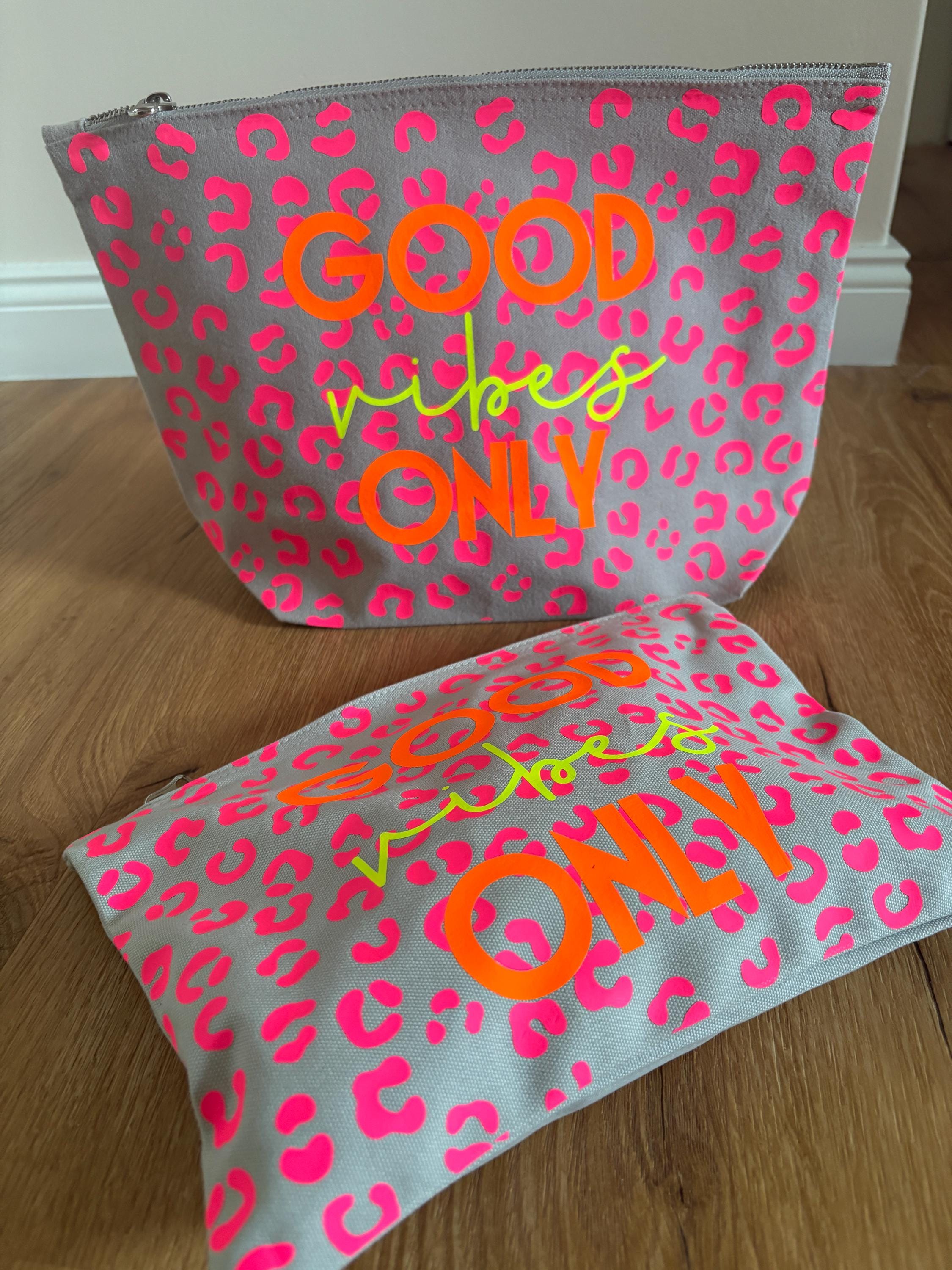 ✨ Toiletry bag “Good Vibes Only” – Neon Leo Print ✨