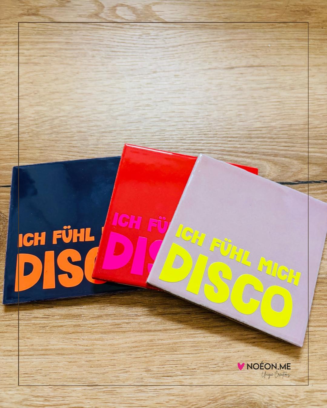 Our stylish "I Feel Disco" coaster will put you in a good mood with every drink. The cork backing makes it non-slip and protects your furniture from scratches and stains—perfect for any party or cozy evening at home.