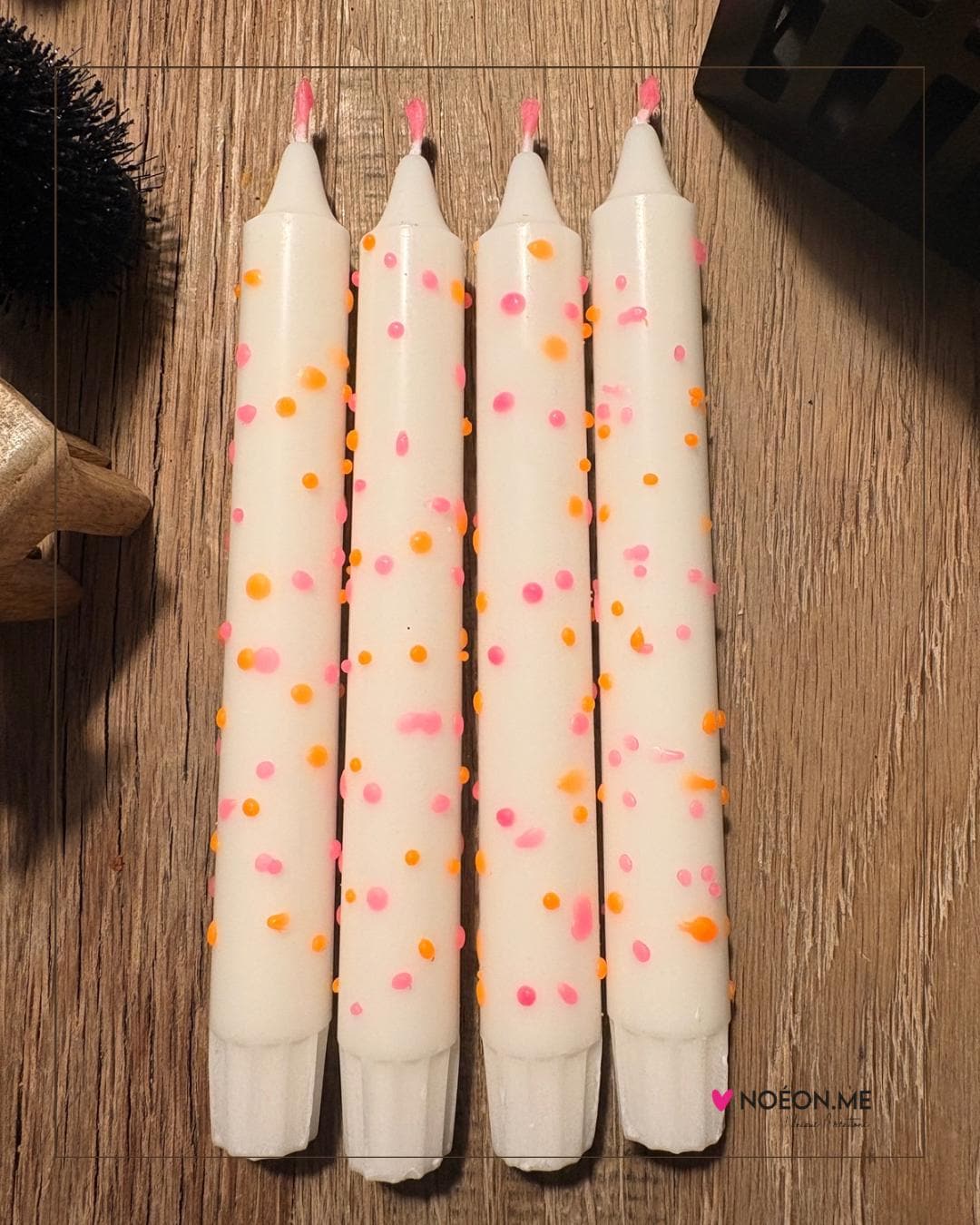 With vibrant splashes of color and a touch of neon, each candle is a unique piece – handcrafted, intentionally imperfect, and precisely for that reason so special. Whether as a gift, as decoration for your table, or as an eye-catching accent during Advent: these candles are guaranteed to bring cheer and a stylish pop of neon to any room.