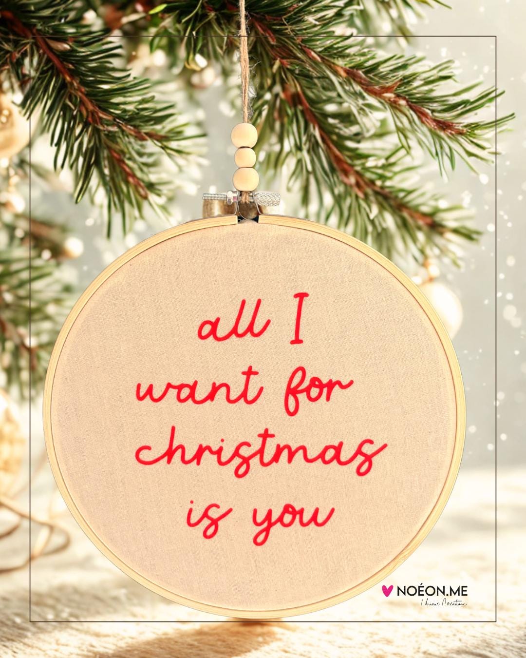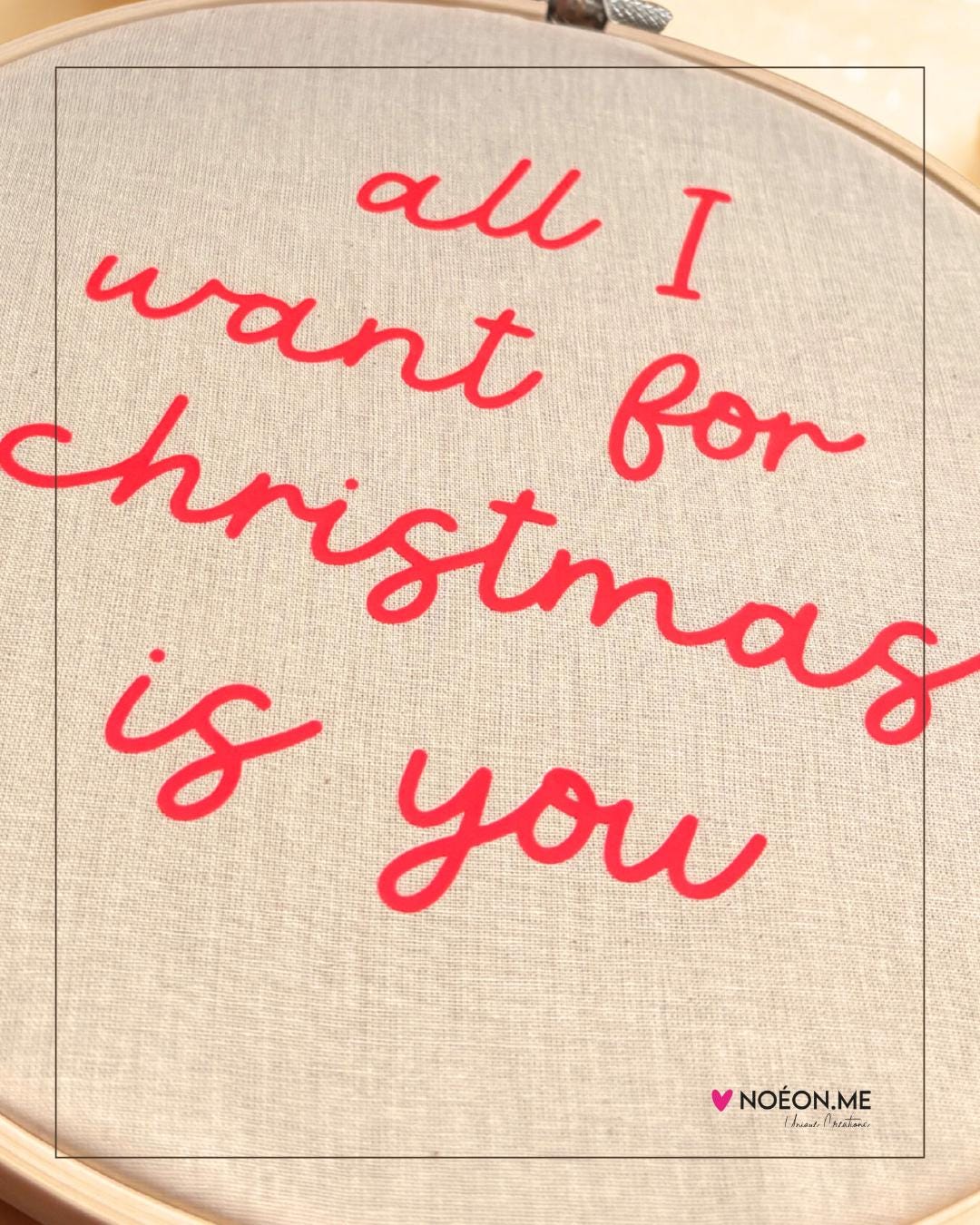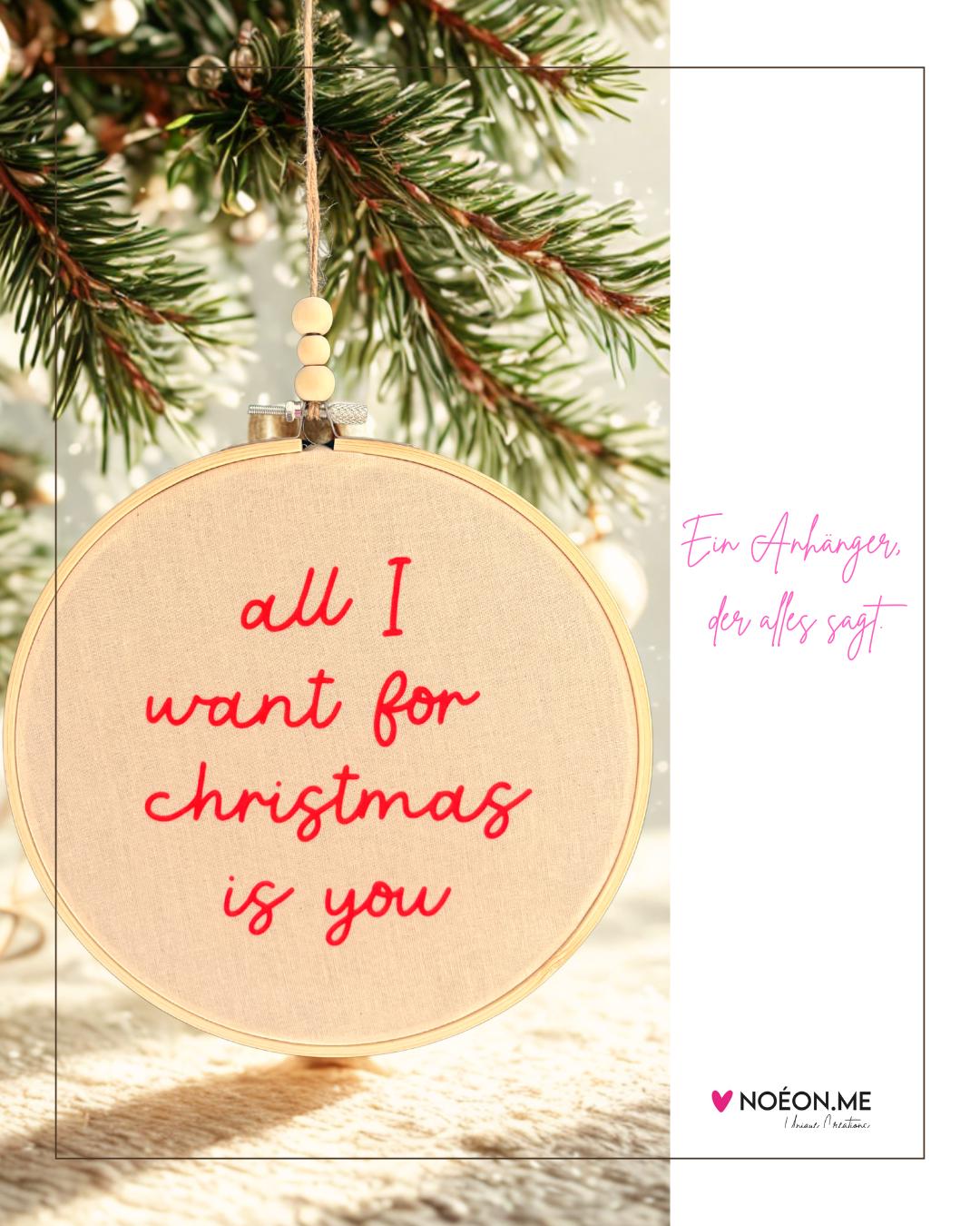 This lovingly designed wall or door hanger in a 20cm embroidery hoop is the perfect alternative to typical Christmas decorations. The red lettering "All I want for Christmas is you" becomes a warm and eye-catching feature – whether on the door, on the wall, or as a gift for loved ones.
